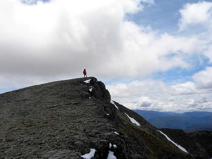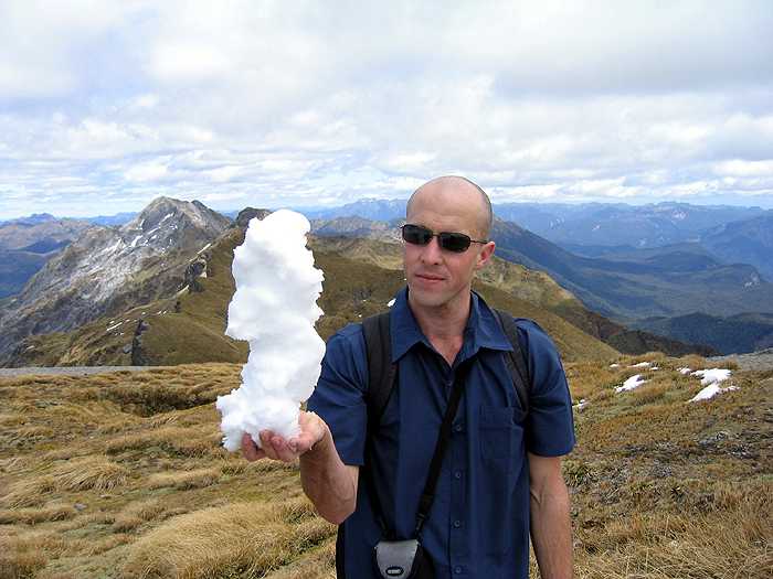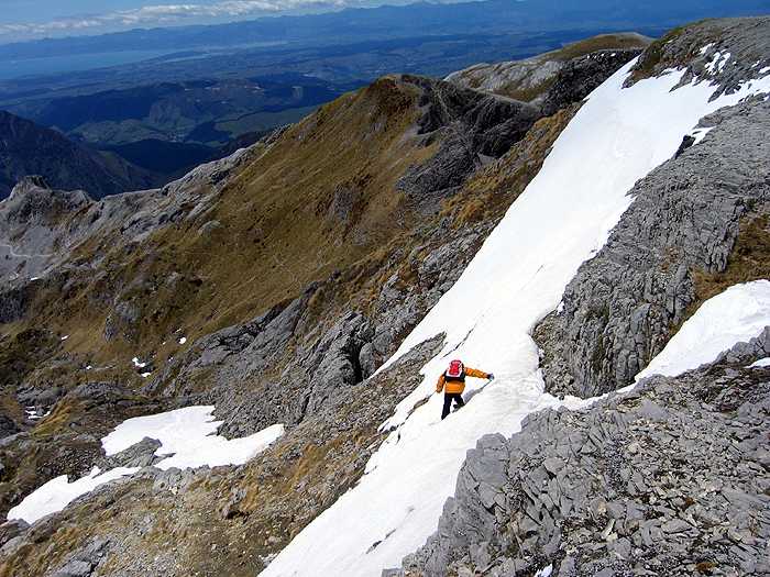 Note how he is dressed (above), then check out the lone woman climber in the next photo, going down the snow stairway we had just come up - every part of her body covered in the best quality mountain climbing equipment, she looked at us very strangely in our light clothing.....